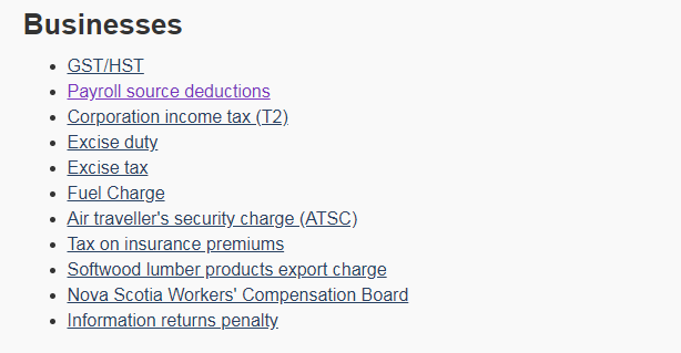 点击 a business。在下面的选项选择自己要付的税款类型payroll source deductions